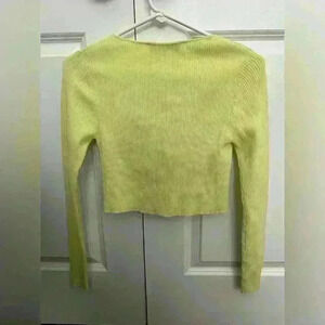 Key words: Zara, trendy, wrap top, tie front, ribbed, lime green top, lightweight, long sleeve top, casual, night out, going out, casual