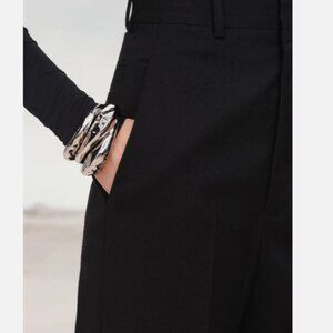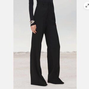 Zara Limited Edition 100% Wool Straight-Leg Trousers Black