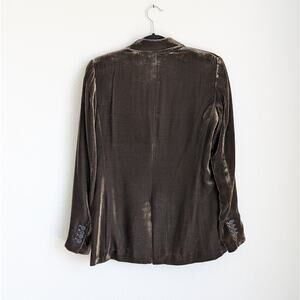 Zara Brown/Dark Olive Velvet Single-breasted Long Sleeve Silk Blend Blazer Jacket,