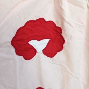 Zara Limited Edition embroidered dress in soft pink cotton with bold red appliqué. Features a square neckline, wide short sleeves, and an easy midi-length silhouette with boho folk-style stitching. The breezy, relaxed fit and bold artisan embroidery give it a vintage-inspired, peasant dress look perfect for summer.