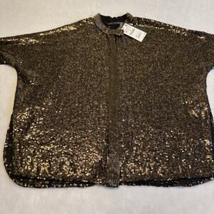 Zara Limited Edition Metallic Gold Sequin Beaded Button Up Blouse Womens Size M