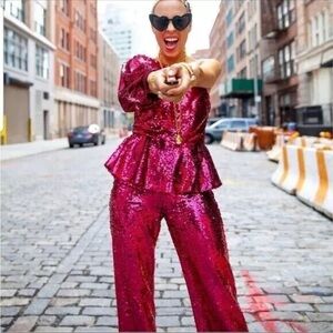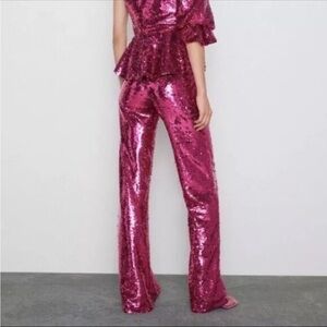 Zara Limited Edition Pink Sequined Trousers Small NWT Blogger Fav Holiday Party