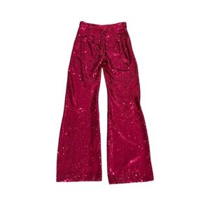 ZARA Pants Womens Tall Pink Sequined Flared High Waist New With Tags