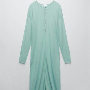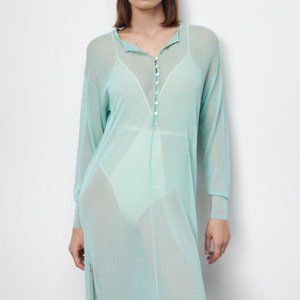 TUNIC WITH SCOOP NECK AND LONG SLEEVES. SIDE VENTS AT HEM. FRONT BUTTON CLOSURE.