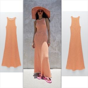 ⭐ Zara White-Orange Sleeveless round neck knit dress.