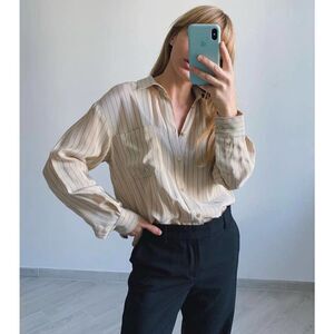 Zara Limited Edition Combination Jumpsuit Women Striped Black Tan Medium