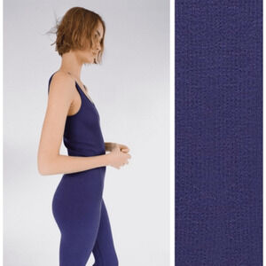 Zara Limitless Contour Collection Blue Seamless Jumpsuit with textured ribbed knit, scoop neckline front/back, sleeveless, ankle length. Great layering piece.