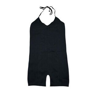 Women's Zara Limitless Contour Collection Knit ribbed cutout bodysuit with halter neck and shorts in black. New with tags. Women's size M-L.