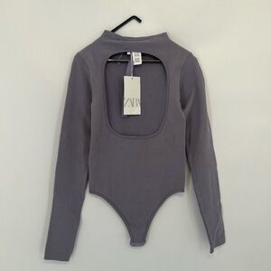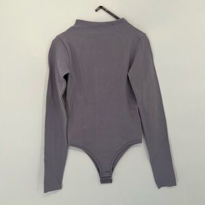 Zara Limitless Contour High Neck Long Sleeve Back Cut Out Bodysuit In Lavender