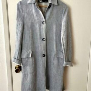 Zara Linen Blend Button Front Duster Jacket Size XS