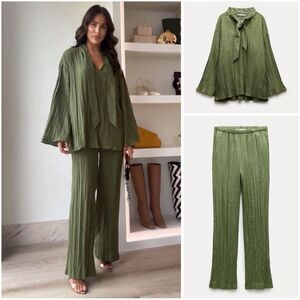 Zara Linen Blend Co-Ord Set New ZW Collection Green
