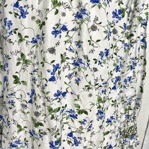 Zara Linen Blend Cottagecore Floral Long Sleeve Dress Smocked Neck size Small