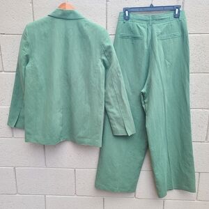 Zara | Linen Blend Menswear Inspired Relaxed Suit Set In Mid Green Size XS