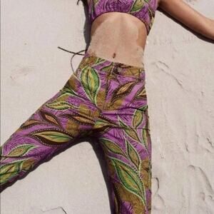 Zara Linen Blend Psychedelic Retro Print Pants Purple Womens XSmall