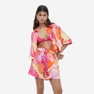 Zara Linen Blend Set Shorts Blouse Large New