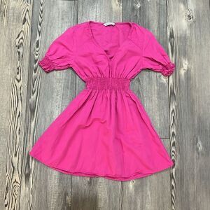 Zara Linen Blend Mini Dress With Elastic Waistband