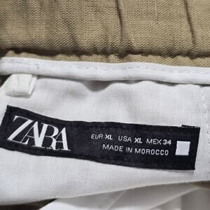 Zara Linen Cotton Blend Pants XL Tan Drawstring Straight Leg Trousers Pockets