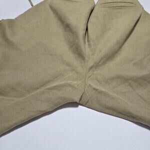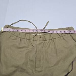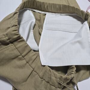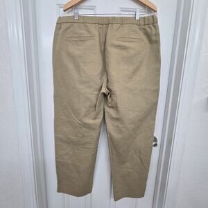 Zara Linen Cotton Blend Pants XL Tan Drawstring Straight Leg Trousers Pockets