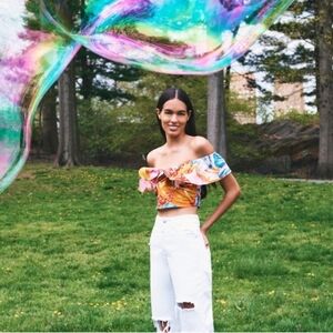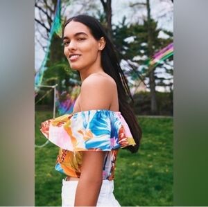 Zara Linen Fiesta Tropical Crop Top Size S Summer Beach Festival