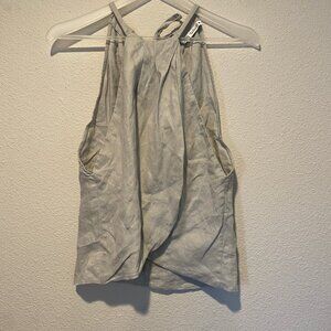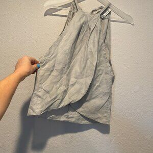 Zara Linen Halter Top Gray Size Medium High Neck Sleeveless Blouse