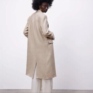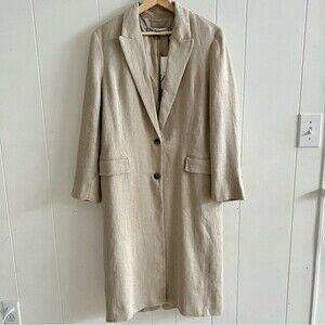 Menswear style coat made of 100% linen. Lapel collar and long sleeves. Flap pockets at front. Back vent at hem.Fully lined.
