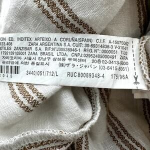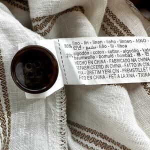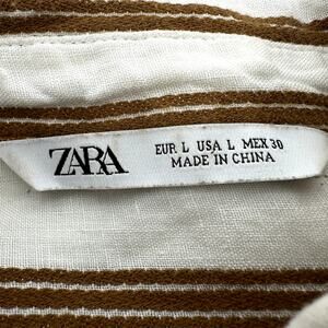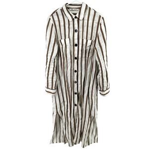 Zara Linen Midi Shirt Dress Striped Side Slit Button Down Collar Brown White L