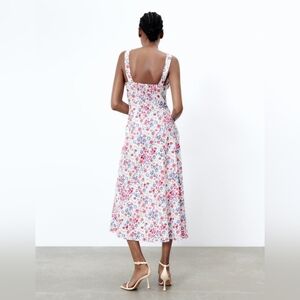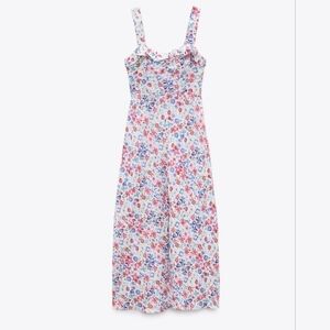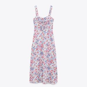 Zara Linen Multicolored Floral Midi Front Slit Dress Size M