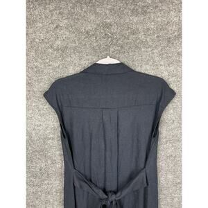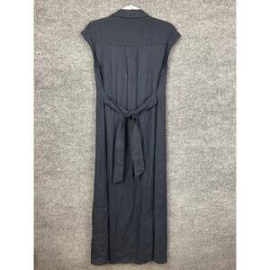 Zara Linen Navy Blue Sleeveless Button-down Maxi Shirt Dress Size XS