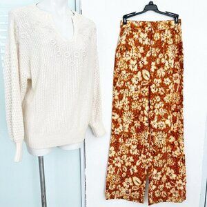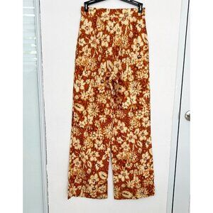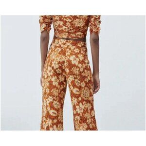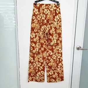 ZARA LINEN PANTS FLORAL ORANGE BURNT BOHEMIAN STYLE