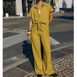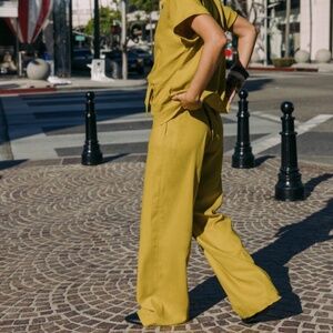 Front pockets. Wide leg. Front closure with zipper, interior button with hook.