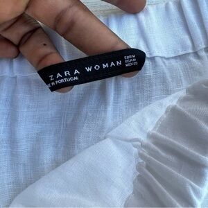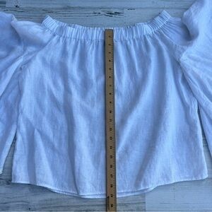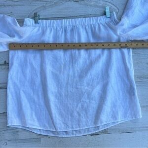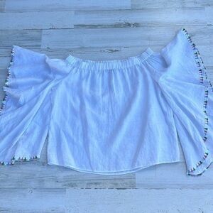 Zara Linen Top Size Medium Womens Off Shoulder Blouse Bohemian Fringe Hem