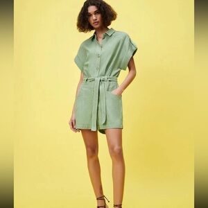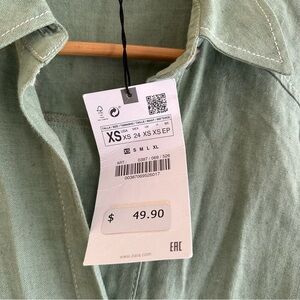 Zara Linen topstitched jumpsuit in light green Size XS Minimalist Beachy
