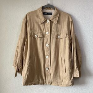 Zara Linen Blend Shacket Sz M Tan Button Up Lightweight Jacket Boho Minimalist