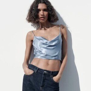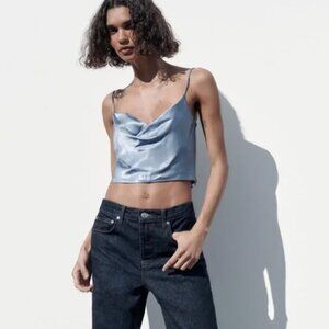 Zara Liquid Blue Silver Perfect SATIN EFFECT SHORT TOP - Small