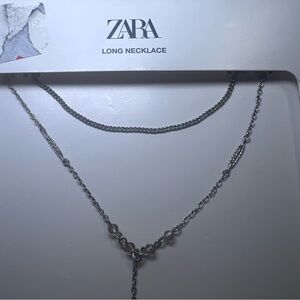 Zara Long 2 Piece Horn Necklace Silver New with Tags
