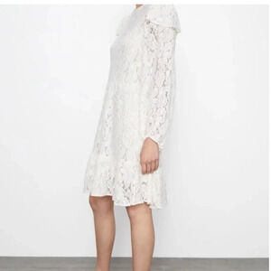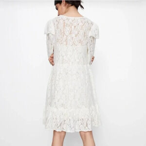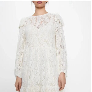 Zara Long Balloon Sleeve Ivory Cream Floral Lace Dress Boho Fairycore SZ Medium