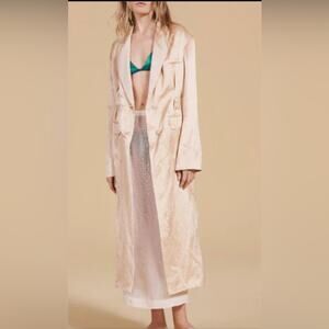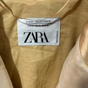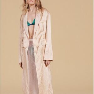 Zara Long Cream Coat Linen Blend Coat with Topstitching,