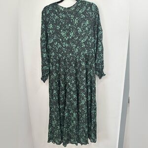 Zara Long Floral Prairie Dress Tiered Long Sleeve Maxi
