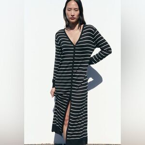 Zara Long Knit Striped Cardigan New