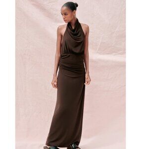 Zara Long Open Back Halter Dress. Size XS in Dark Brown. Only worn once and dry cleaned, in perfect condition. Perfect wedding guest dress!