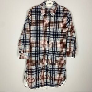 Zara Long Plaid Shacket Overshirt Jacket Coat Womens XS Oversized