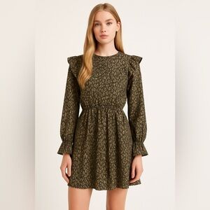 Zara | Long Sleeve Animal Print Textured Dress Size Small