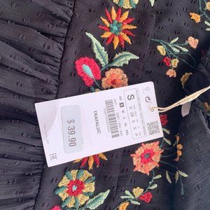 Zara Long Sleeve Black Mini Dress/ Romper w/ Embroidery