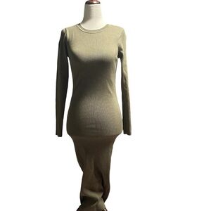Zara Long Sleeve Crew Neck Body Con Maxi Dress Size Small