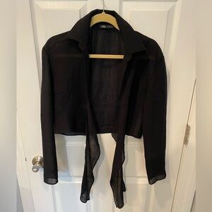 It is see through as you can see from photos but with a nude bra or bralette, it looks great!