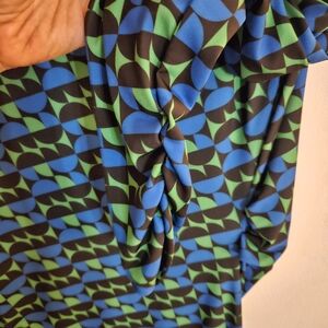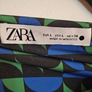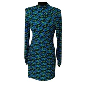 Zara Long Sleeve Geometric Mock Neck Mini Bodycon Dress Blue/Green/Black Large