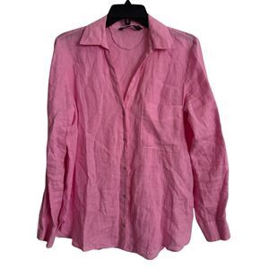 Zara Long Sleeve Linen Button Down Shirt S Pink