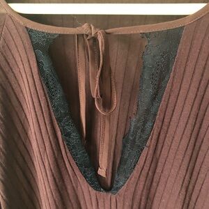 Ties at the neck. Lace keyhole opening. Long bell sleeves. Super soft. Approximate Measurements Underarm to underarm - 18 inches Length - 25 inches 583