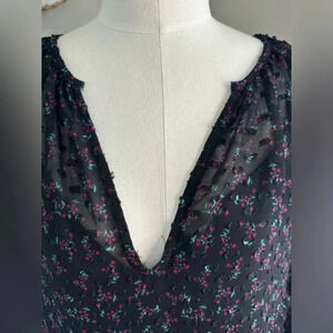 Zara Long Sleeve Black Pink Floral Swiss Dot All Ruffles Babydoll Dress size XS