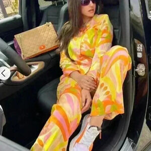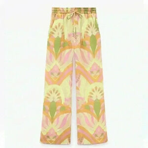 Zara Loose Fitting Satin High Waisted Print Pant Size XS EUC!